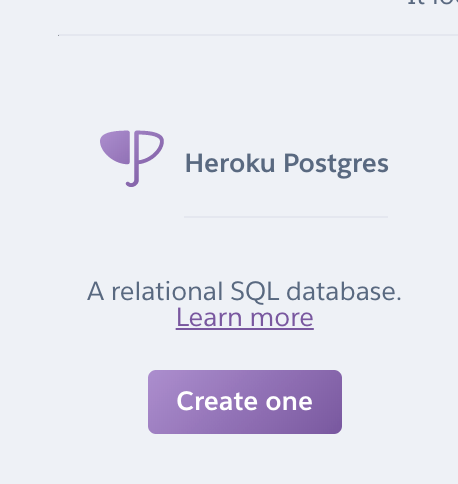 From your new app, go to the Resources tab and add the “Heroku Postgres” Add-on.