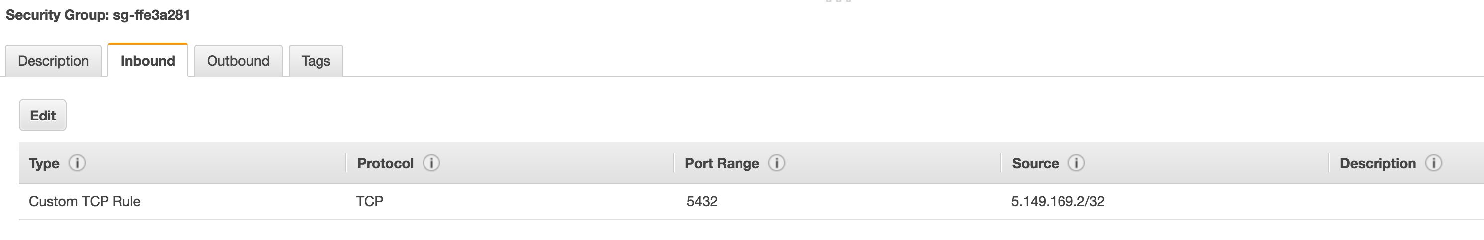 Select PostgreSQL as the type. For Source, change the custom IP to