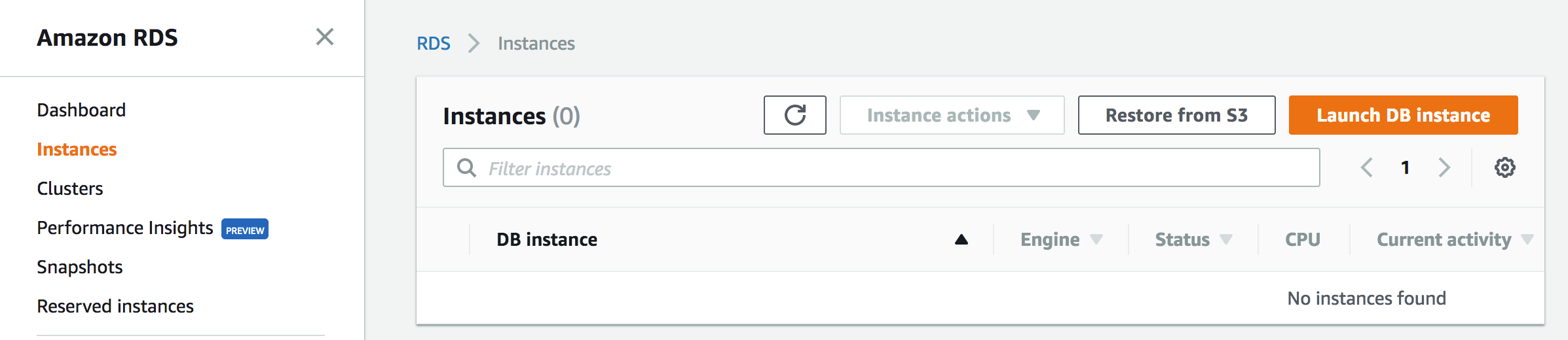 Go to the Instances tab on the left sidebar, and click Launch DB Instance.