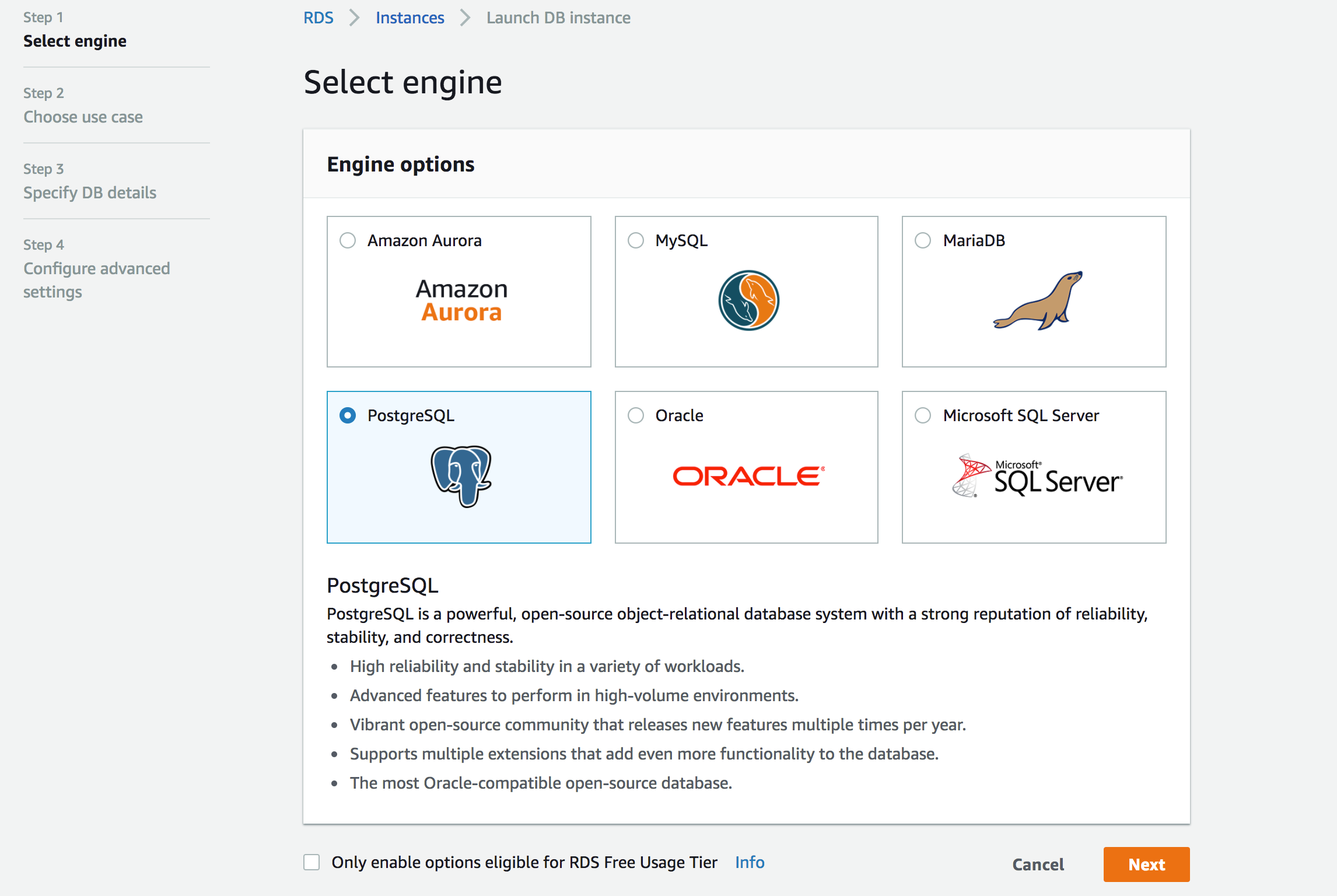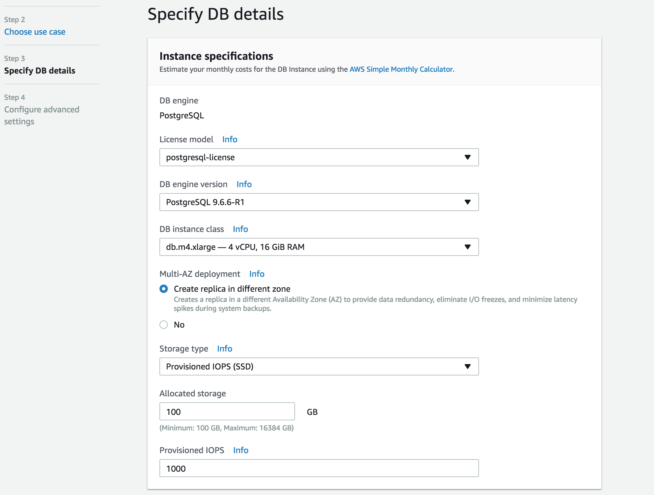 As a supplement to this guide, Amazon has created an official guide to setting up a Postgres database.