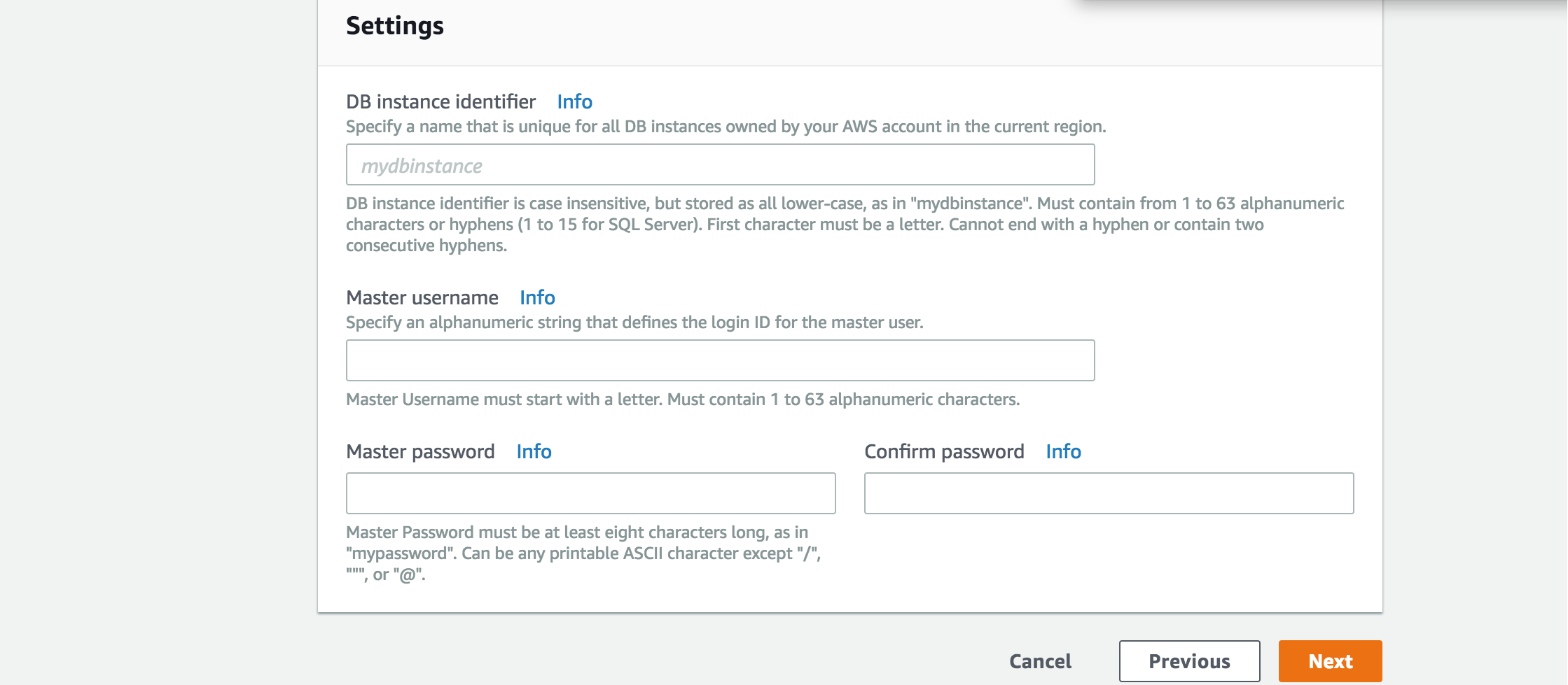 DB Instance Class: selects the machine your database will run on. If you’re not sure what DB instance class is suitable for your database, check the DB Instance Classes chart and the Pricing Page.