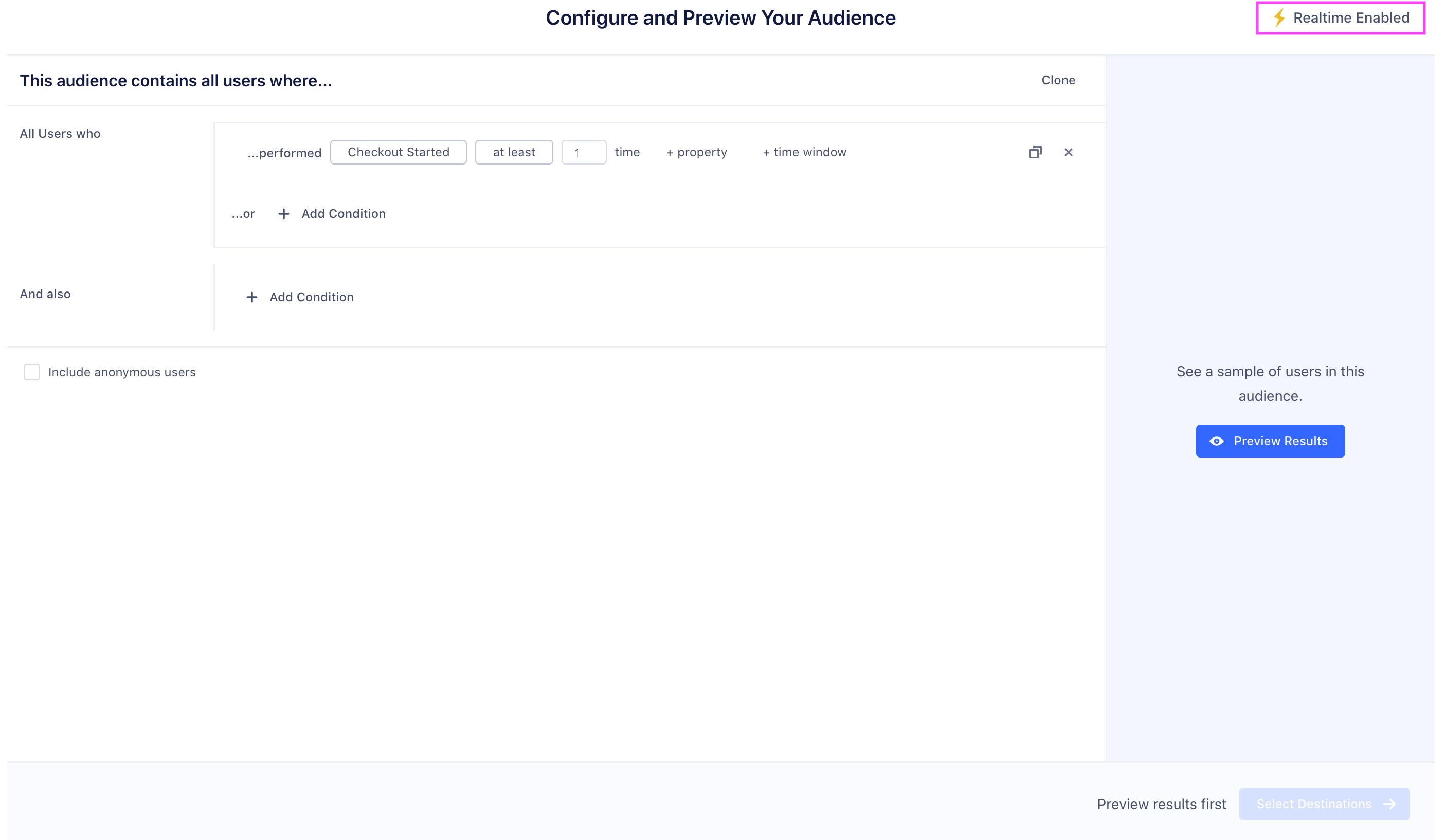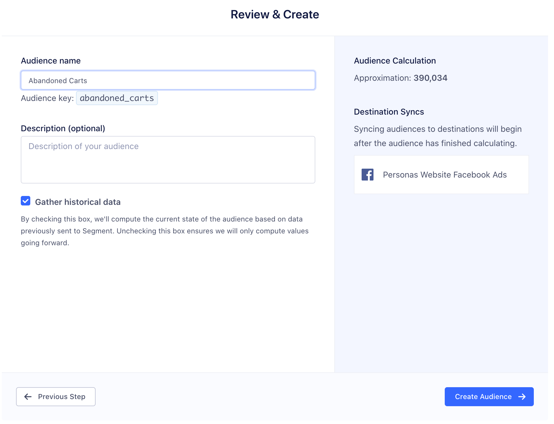 When you connect a new destination to an existing audience, Personas will backfill historical data for that audience to the new destination.