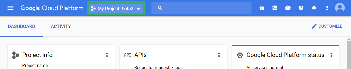 Note: If you don’t see the project you want in the menu, click the account switcher in the upper right corner, and check that you’re logged in to the right Google account for the project.