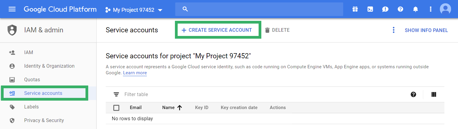 Click the menu in the upper left and select IAM & Admin, then Service accounts.