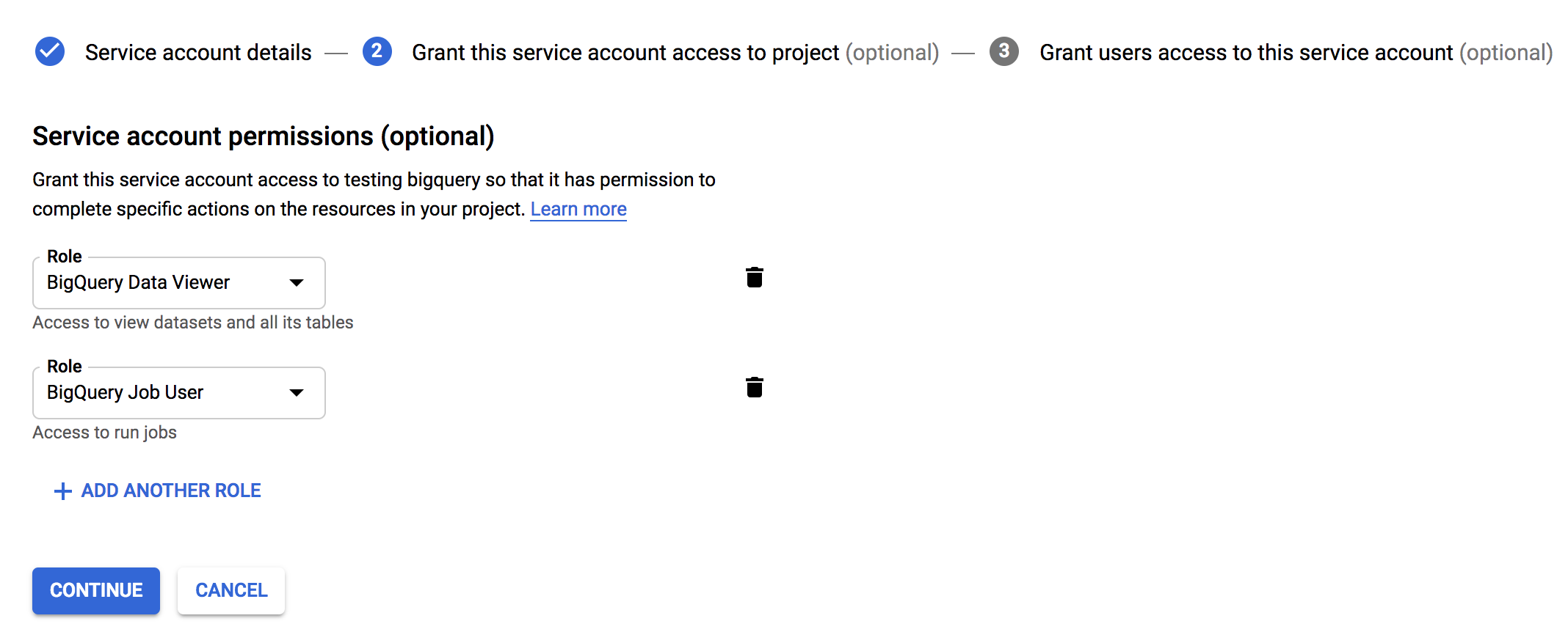 BigQuery Data ViewerandBigQuery Job Userroles.