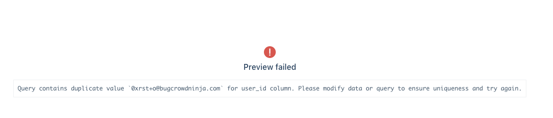 I’m seeing a duplicate user_id error.