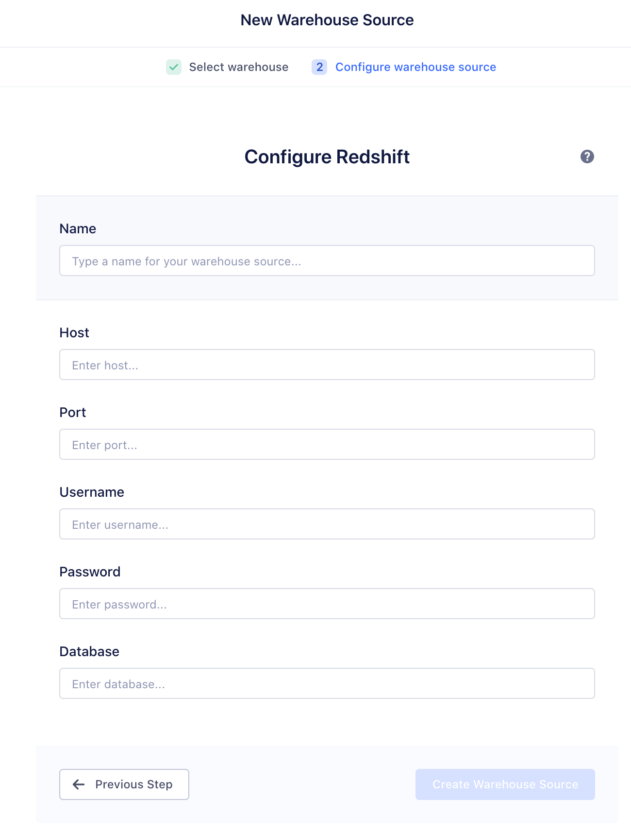 Step 1. Set up a warehouse source